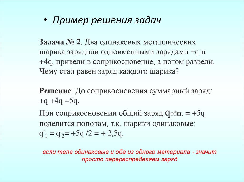 • Пример решения задачЗадача № 2. Два одинаковых металлических