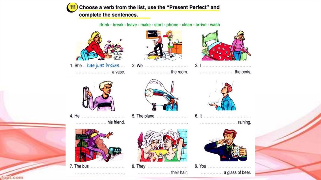 • Действие произошло ранее, но результат в настоящем (just, already,recently):