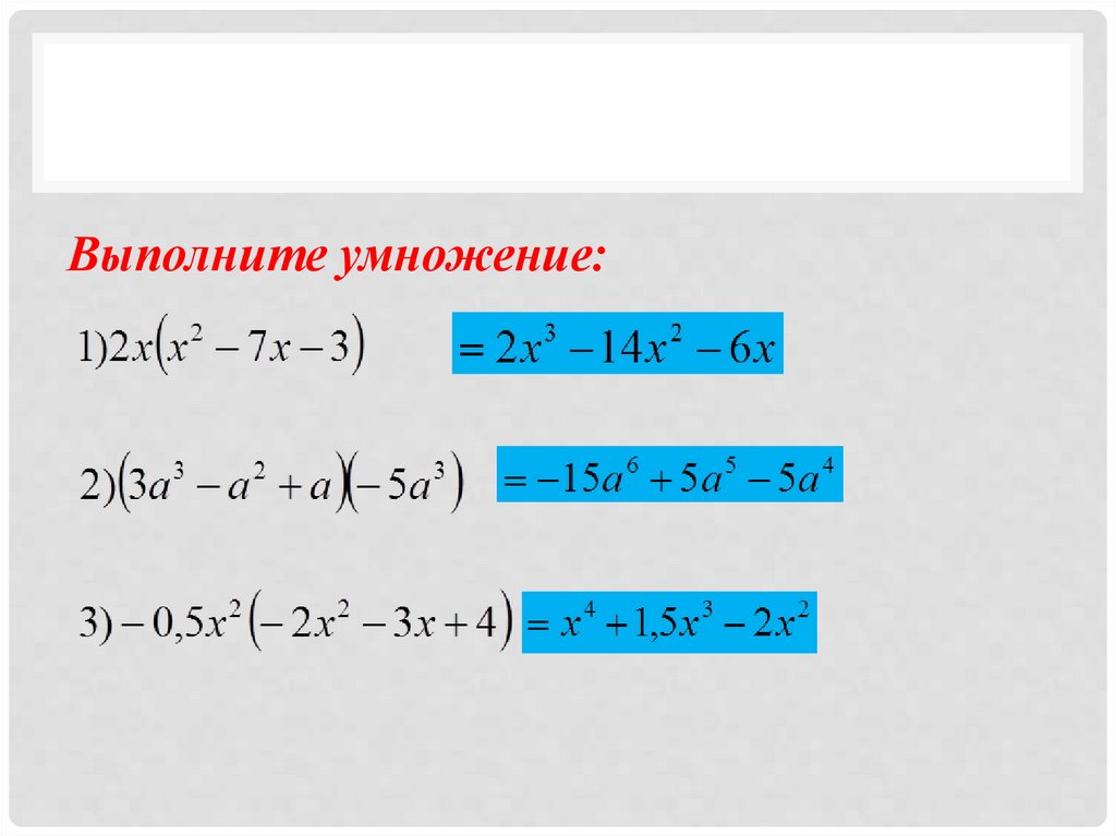 1. Умножение одночлена на многочлен. Урок алгебры в 7 классе