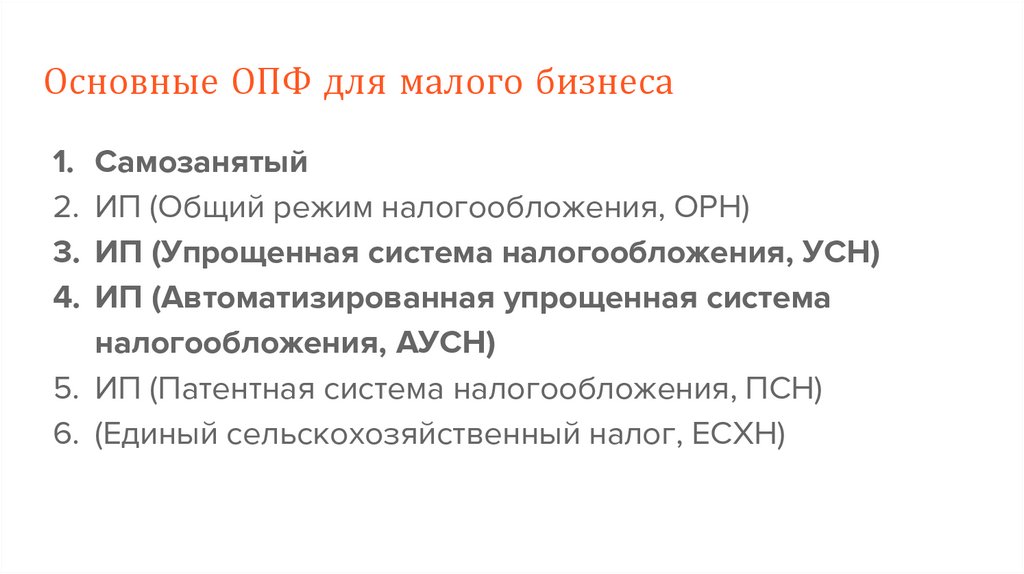 Основные ОПФ для малого бизнеса1. Самозанятый