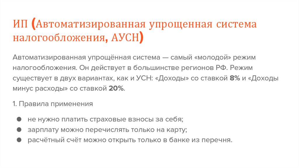 ИП (Автоматизированная упрощенная системаналогообложения, АУСН)