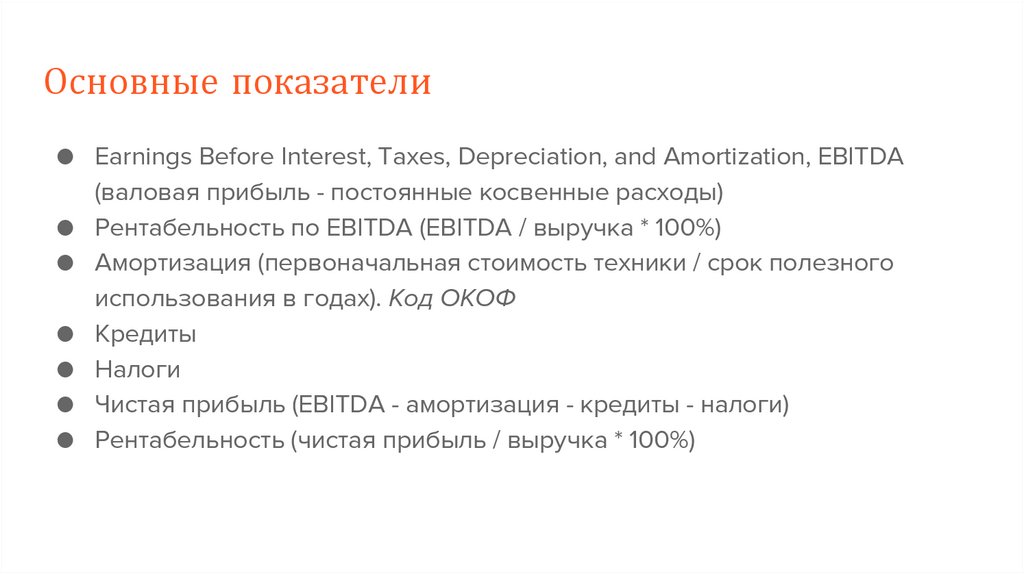 Основные показатели● Earnings Before Interest, Taxes, Depreciation, and Amortization, EBITDA