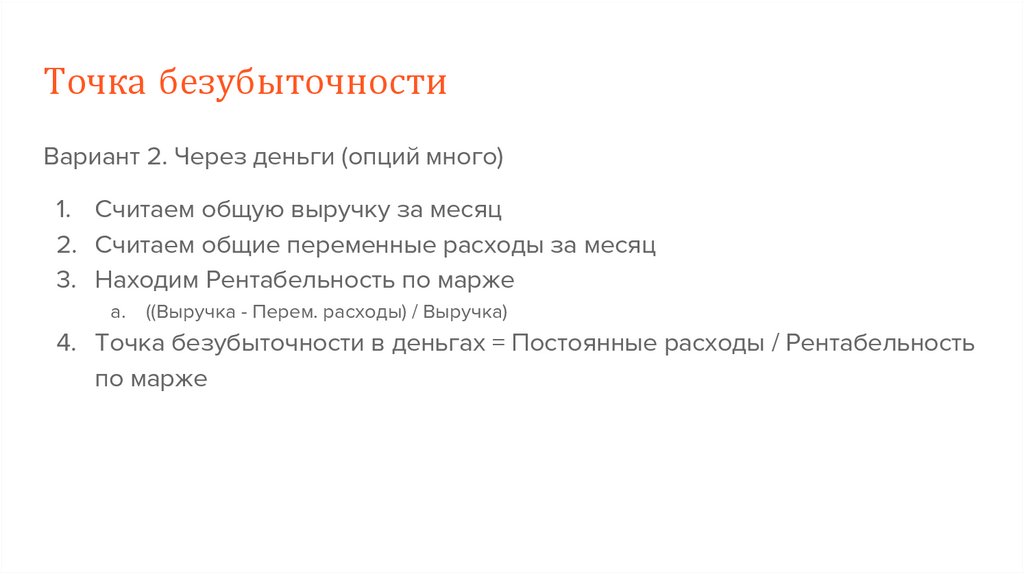 Точка безубыточностиВариант 2. Через деньги (опций много)