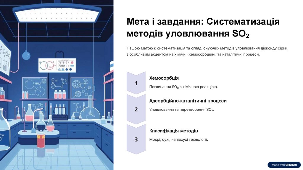 Мета і завдання: Систематизаціяметодів уловлювання SO₂