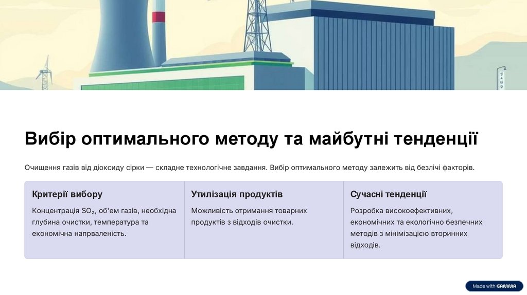 Вибір оптимального методу та майбутні тенденціїОчищення газів від діоксиду сірки — складне технологічне завдання. Вибір оптимального методу залежить від безлічі факторів.