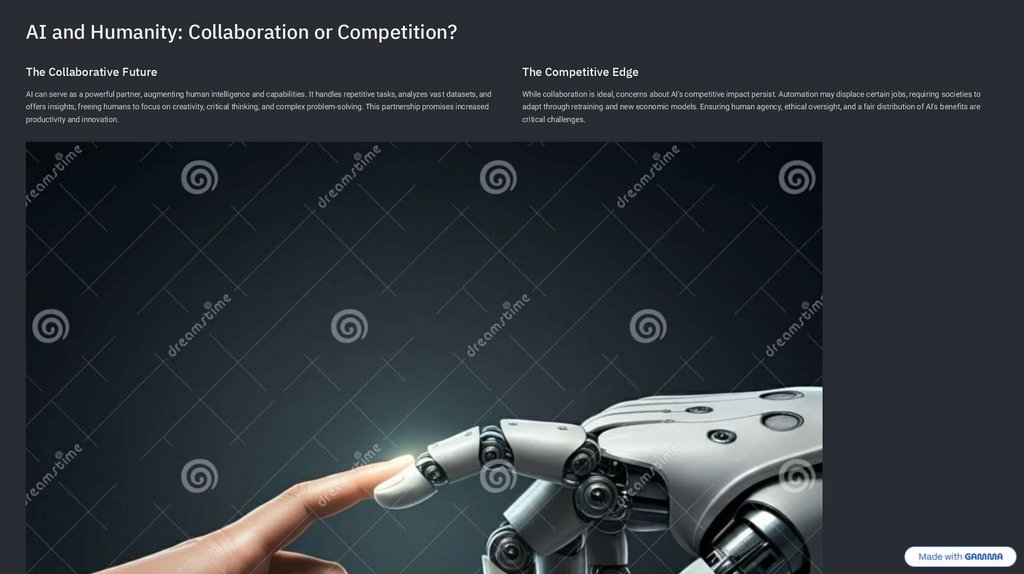 AI and Humanity: Collaboration or Competition?The integration of AI into society presents a critical choice: will AI be a powerful tool for human progress, or will it lead to an