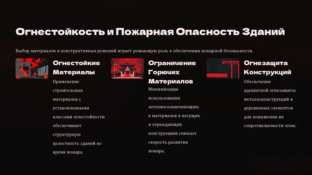 Огнестойкость и Пожарная Опасность ЗданийВыбор материалов и конструктивных решений играет решающую роль в обеспечении пожарной безопасности.