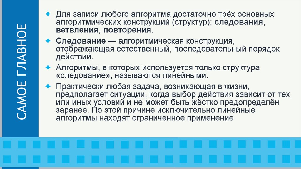 САМОЕ ГЛАВНОЕ✦ Для записи любого алгоритма достаточно трёх основных