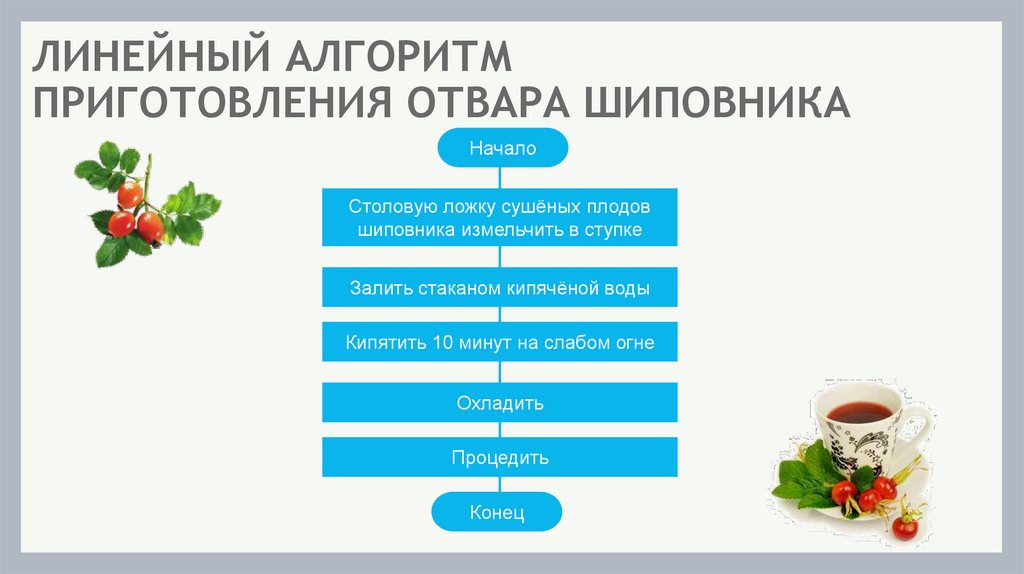 ЛИНЕЙНЫЙ АЛГОРИТМПРИГОТОВЛЕНИЯ ОТВАРА ШИПОВНИКА