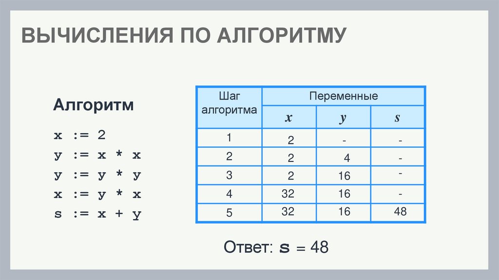 ВЫЧИСЛЕНИЯ ПО АЛГОРИТМУАлгоритм