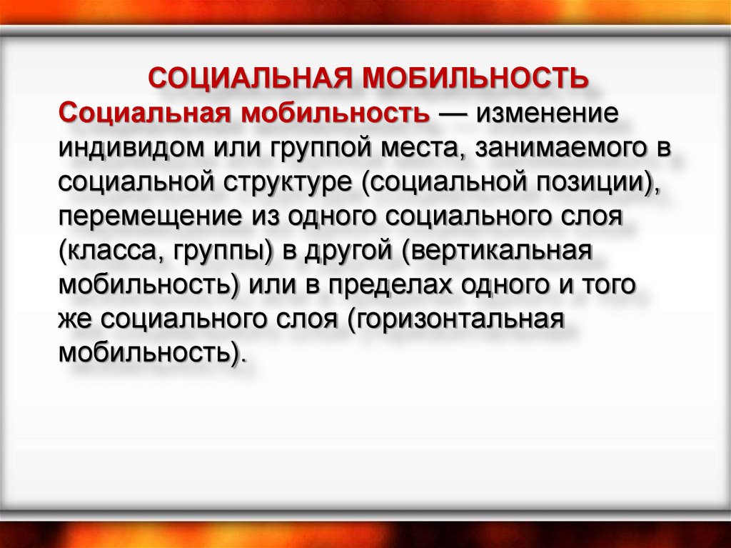 СОЦИАЛЬНАЯ МОБИЛЬНОСТЬСоциальная мобильность — изменение
