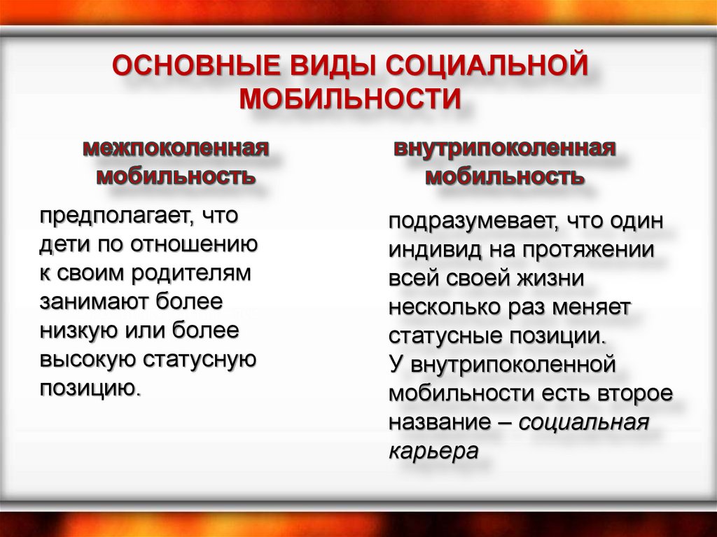 ОСНОВНЫЕ ВИДЫ СОЦИАЛЬНОЙМОБИЛЬНОСТИ