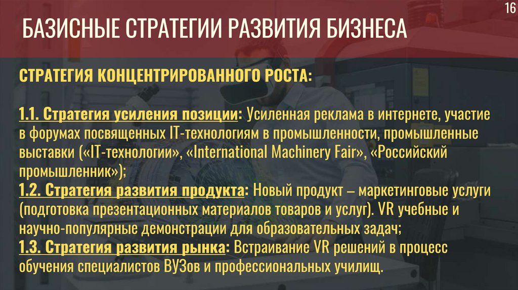 разработки инновационных решений в сфере VRрешений (приоритет: контракты на VR-решения по
