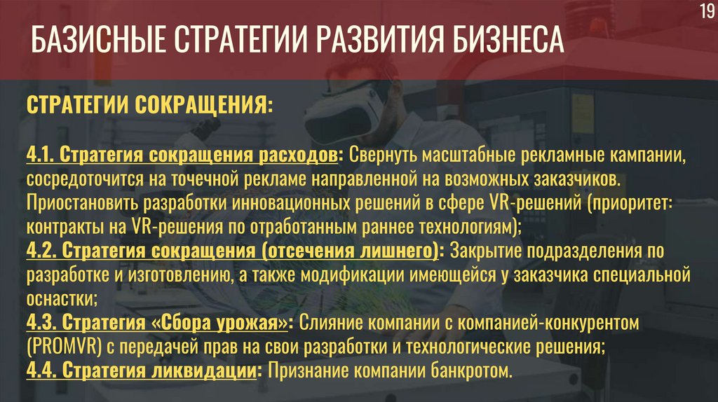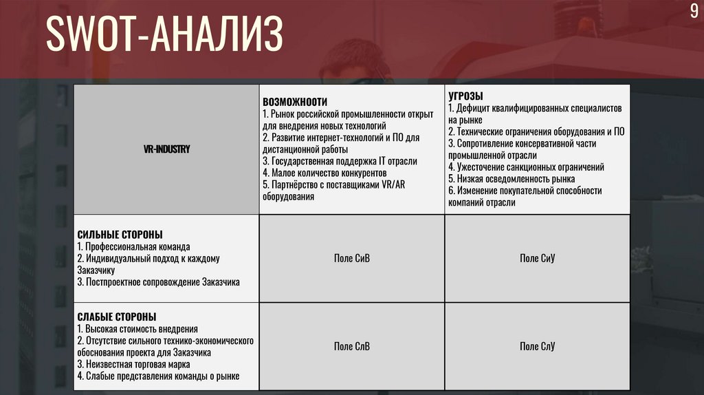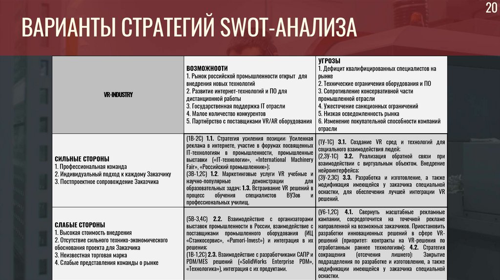 ВАРИАНТЫ СТРАТЕГИЙ SWOT-АНАЛИЗАVR-INDUSTRY