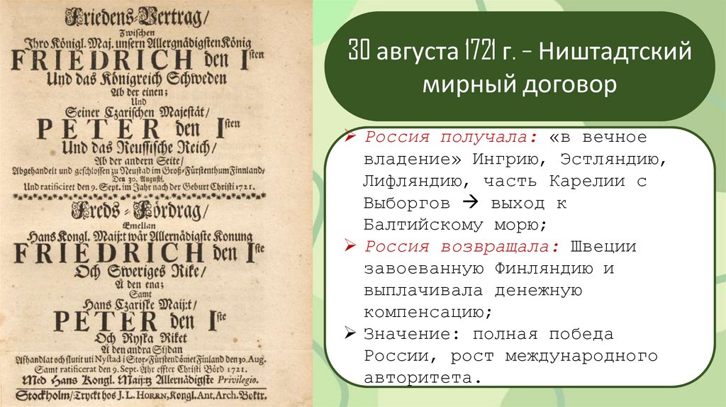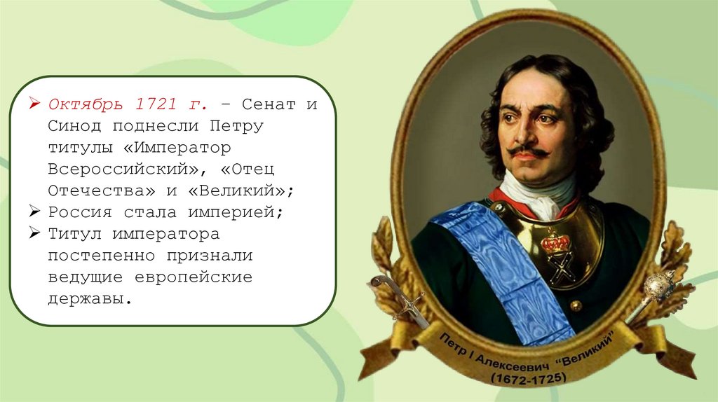 Октябрь 1721 г. – Сенат иСинод поднесли Петру