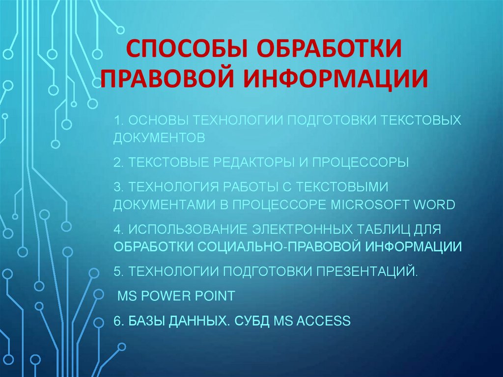 СПОСОБЫ ОБРАБОТКИПРАВОВОЙ ИНФОРМАЦИИ
