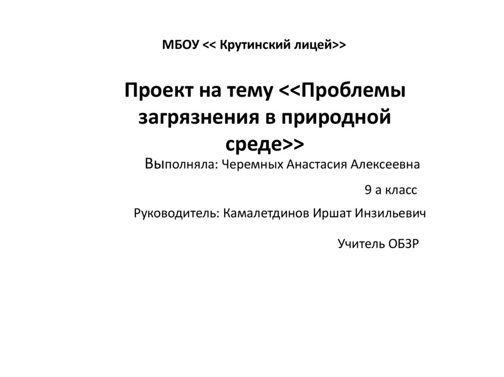 МБОУ << Крутинский лицей>>Проект на тему <<Проблемы