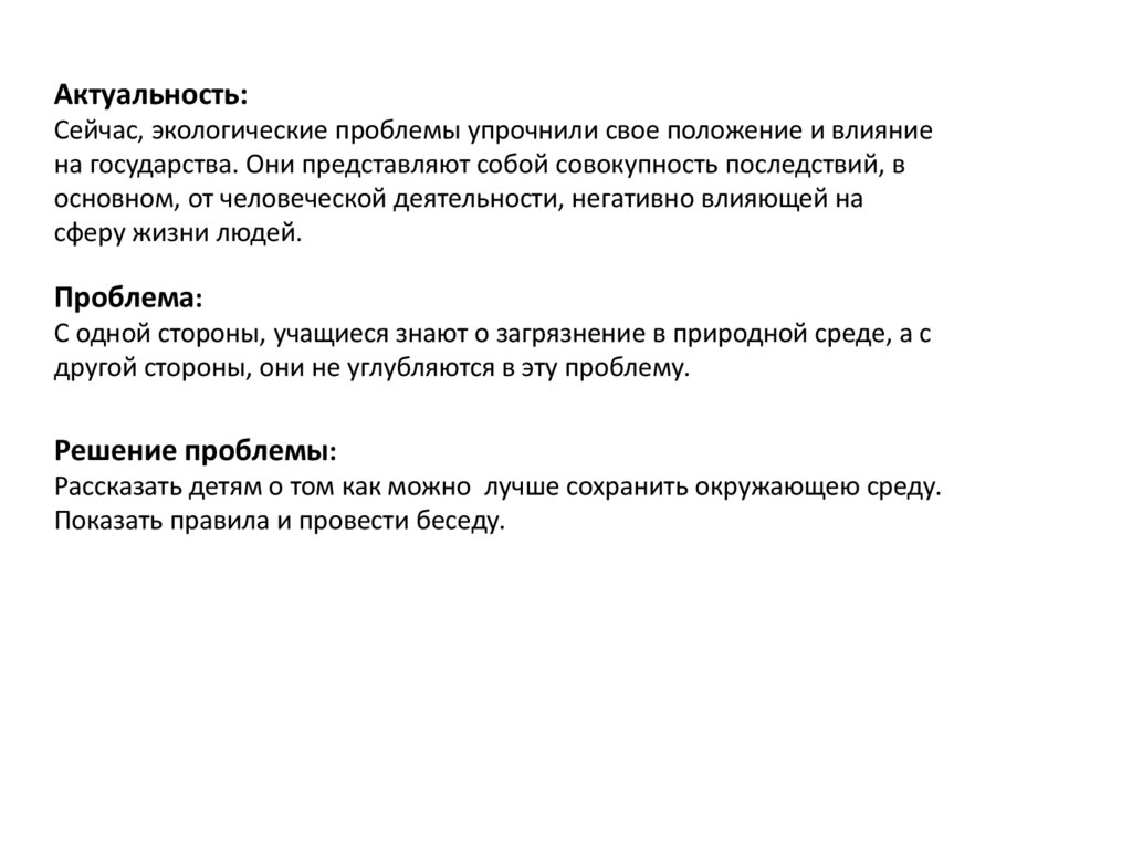 Актуальность:Сейчас, экологические проблемы упрочнили свое положение и влияние
