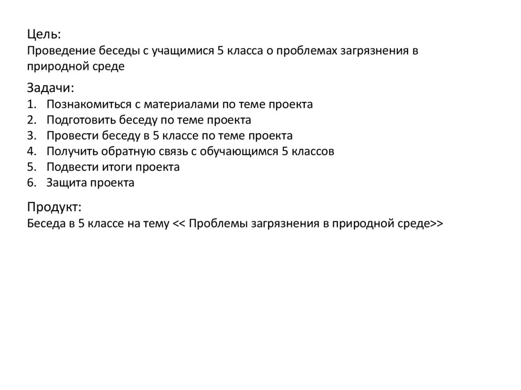 Цель:Проведение беседы с учащимися 5 класса о проблемах загрязнения в