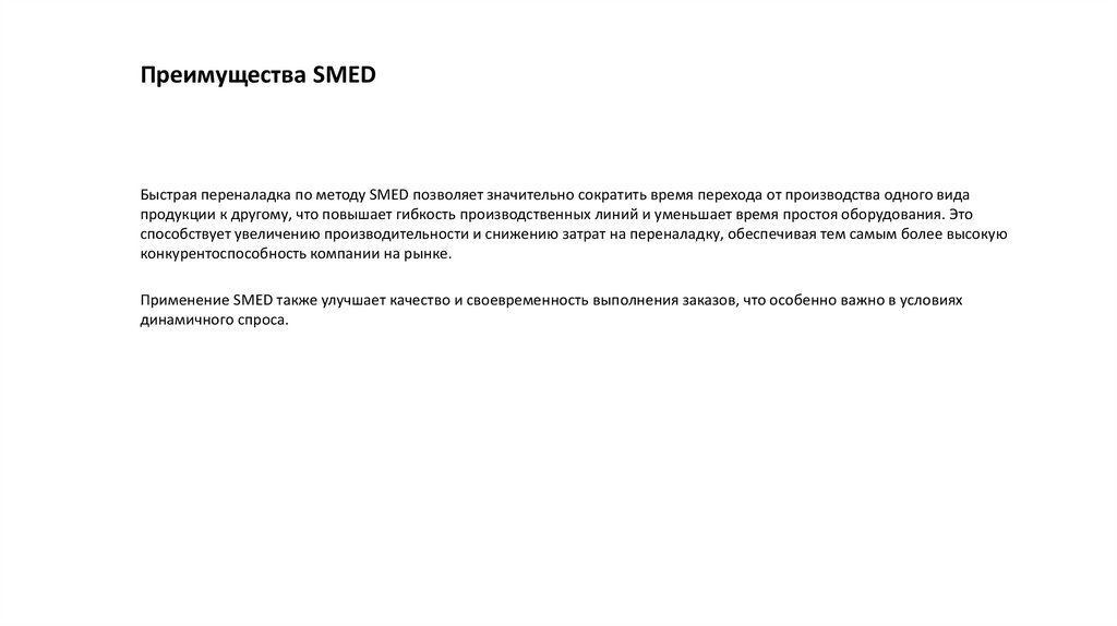 Применение SMED также улучшает качество и своевременность выполнения заказов, что особенно важно в условиях