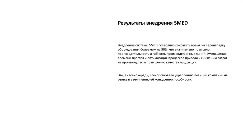 Результаты внедрения SMEDВнедрение системы SMED позволило сократить время на переналадку