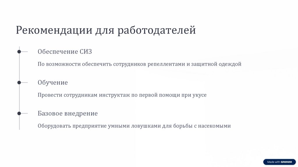 По возможности обеспечить сотрудников репеллентами и защитной одеждой