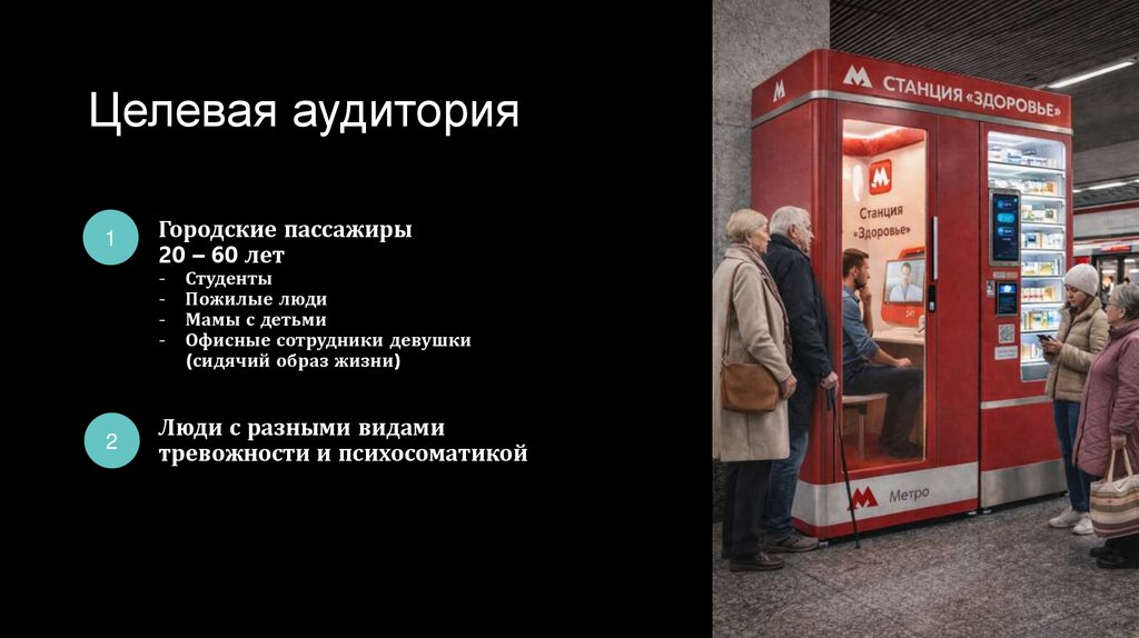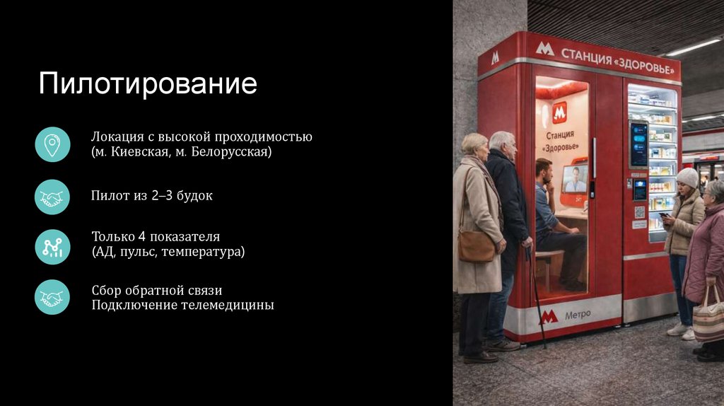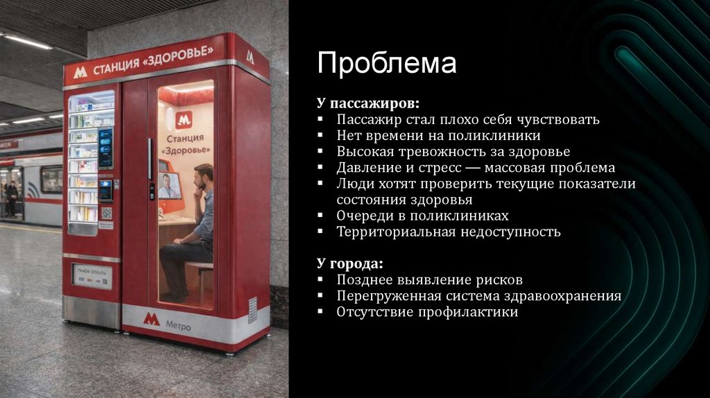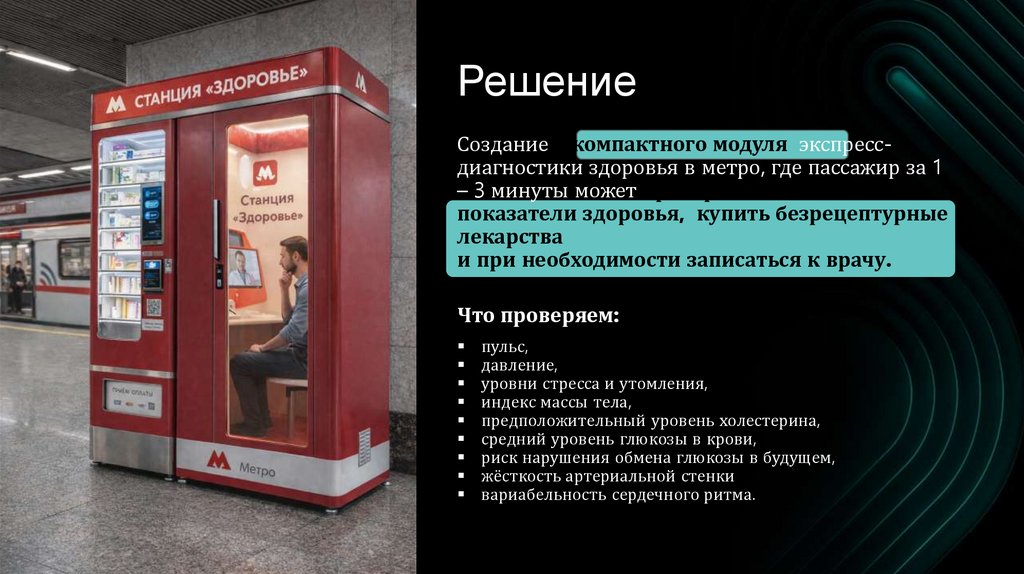 РешениеСоздание компактного модуля экспрессдиагностики здоровья в метро, где пассажир за 1