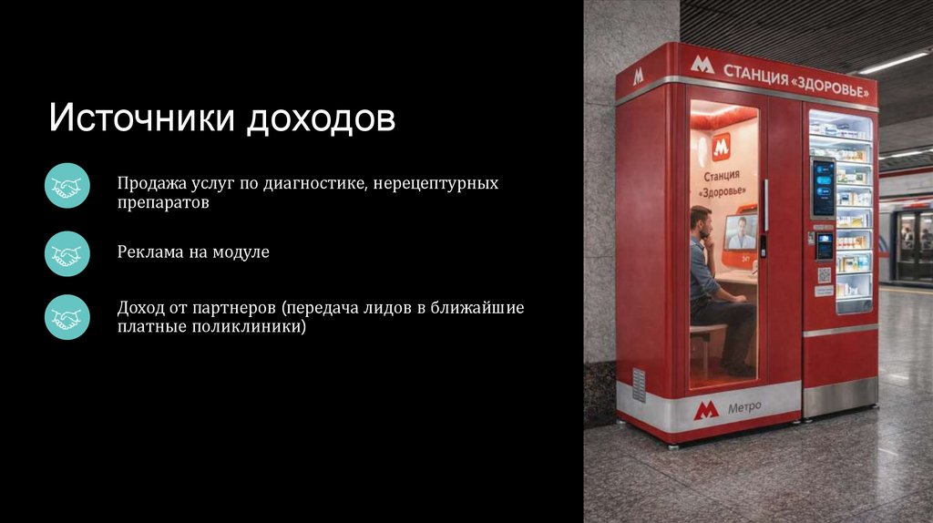 Источники доходовПродажа услуг по диагностике, нерецептурных