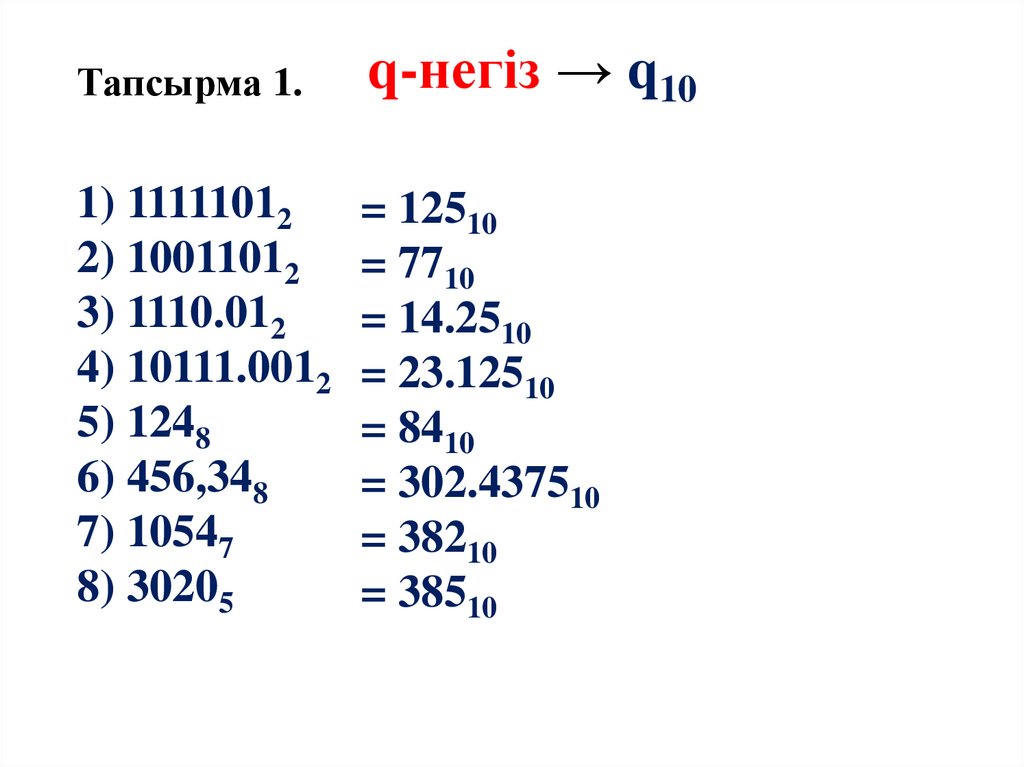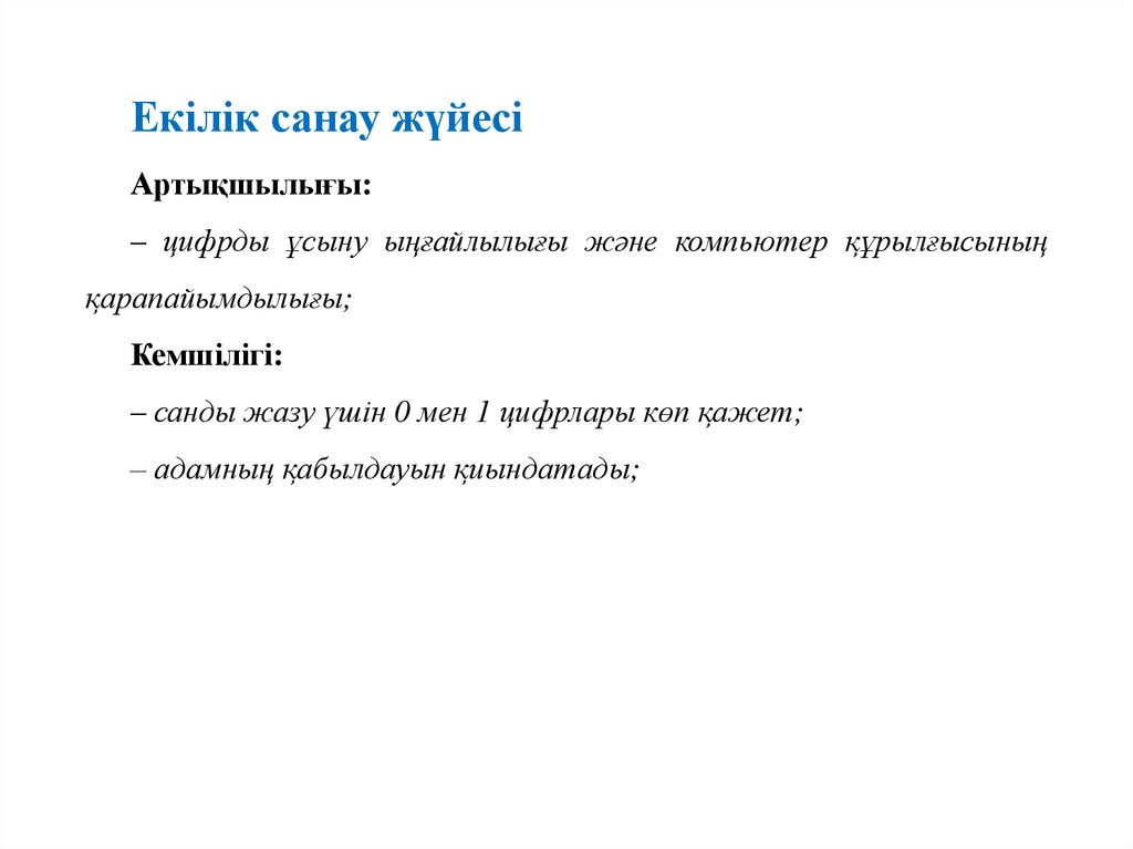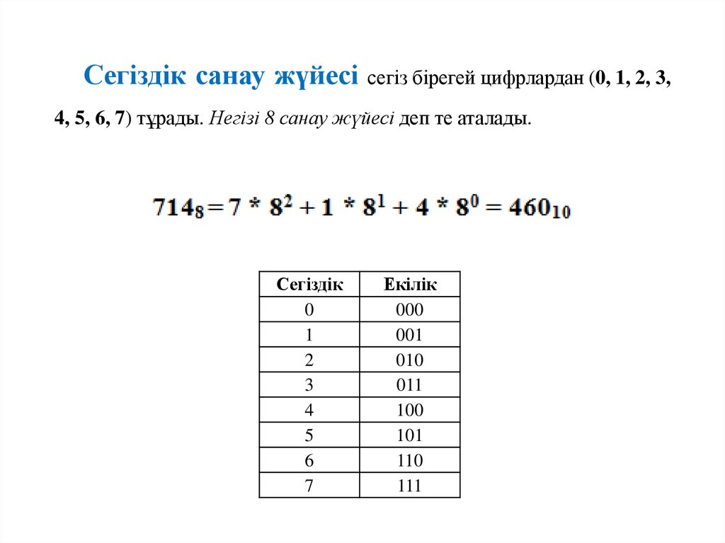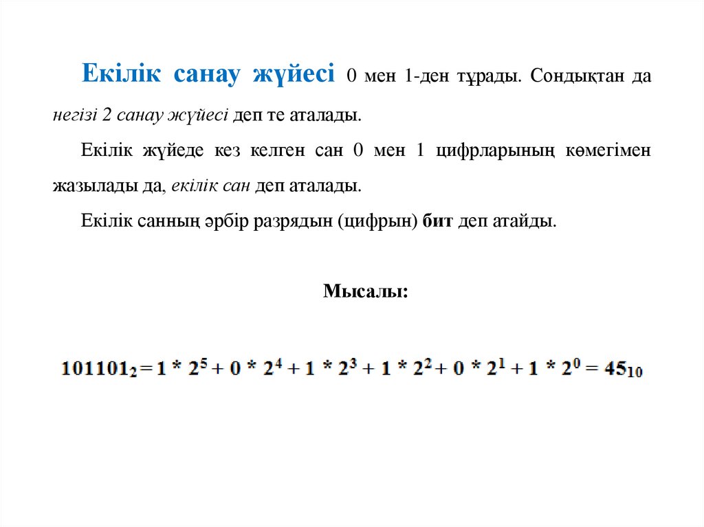 Екілік жүйеде кез келген сан 0 мен 1 цифрларының көмегімен