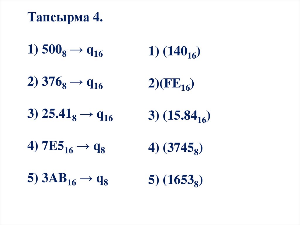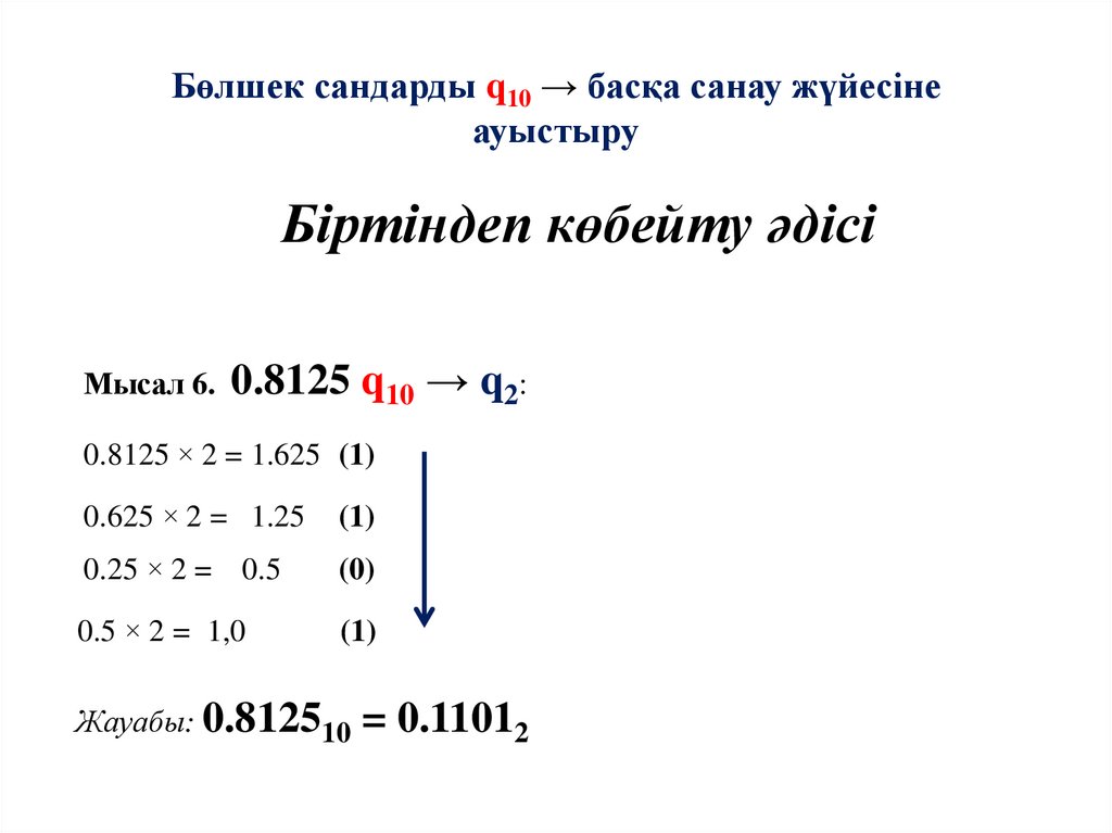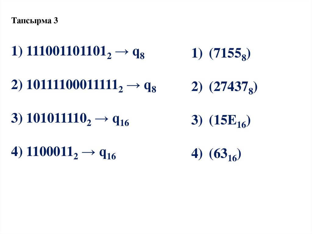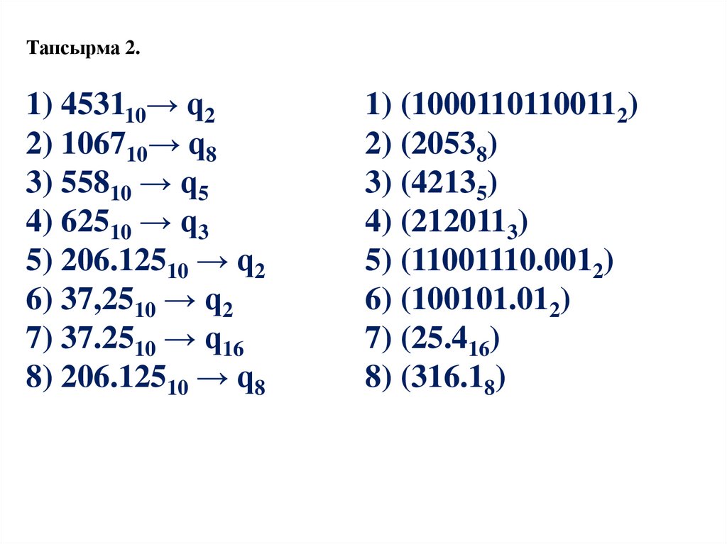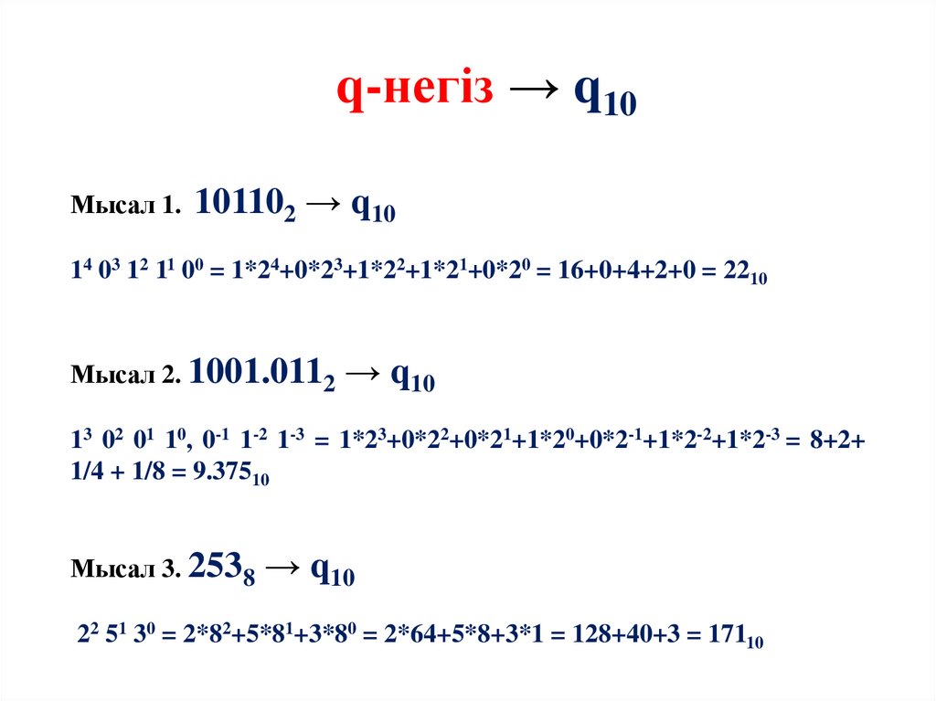 Екілік жүйеде кез келген сан 0 мен 1 цифрларының көмегімен
