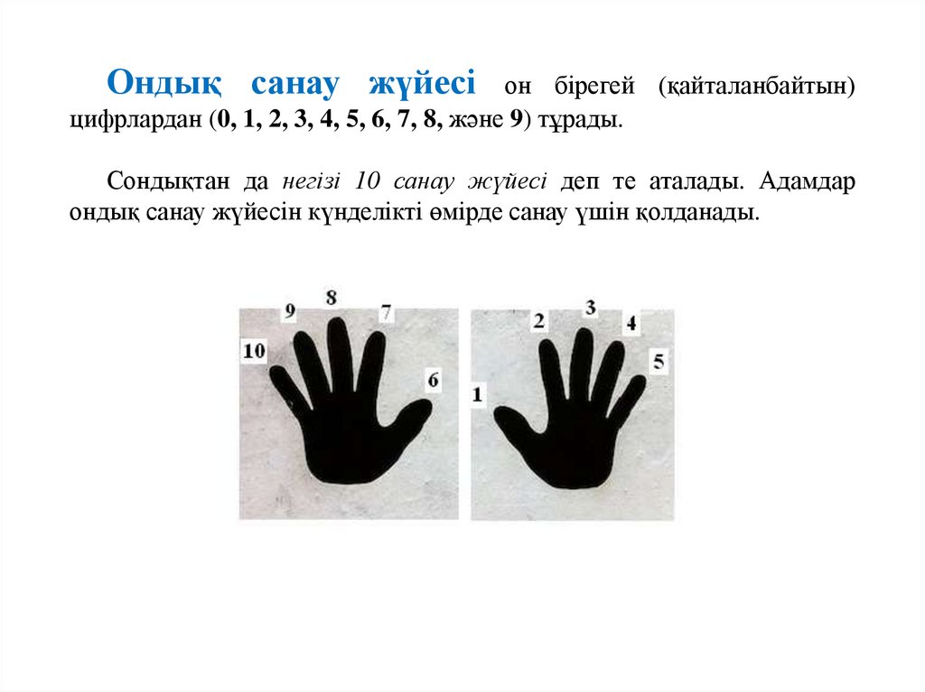 Сондықтан да негізі 10 санау жүйесі деп те аталады. Адамдар