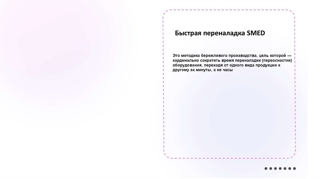 Быстрая переналадка SMEDЭто методика бережливого производства, цель которой —