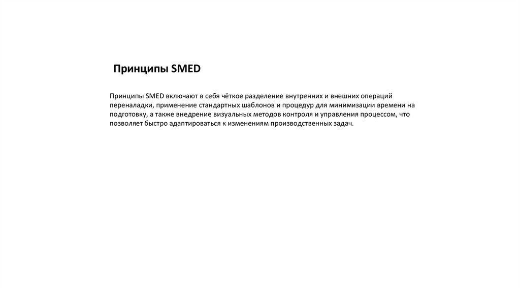 Принципы SMEDПринципы SMED включают в себя чёткое разделение внутренних и внешних операций