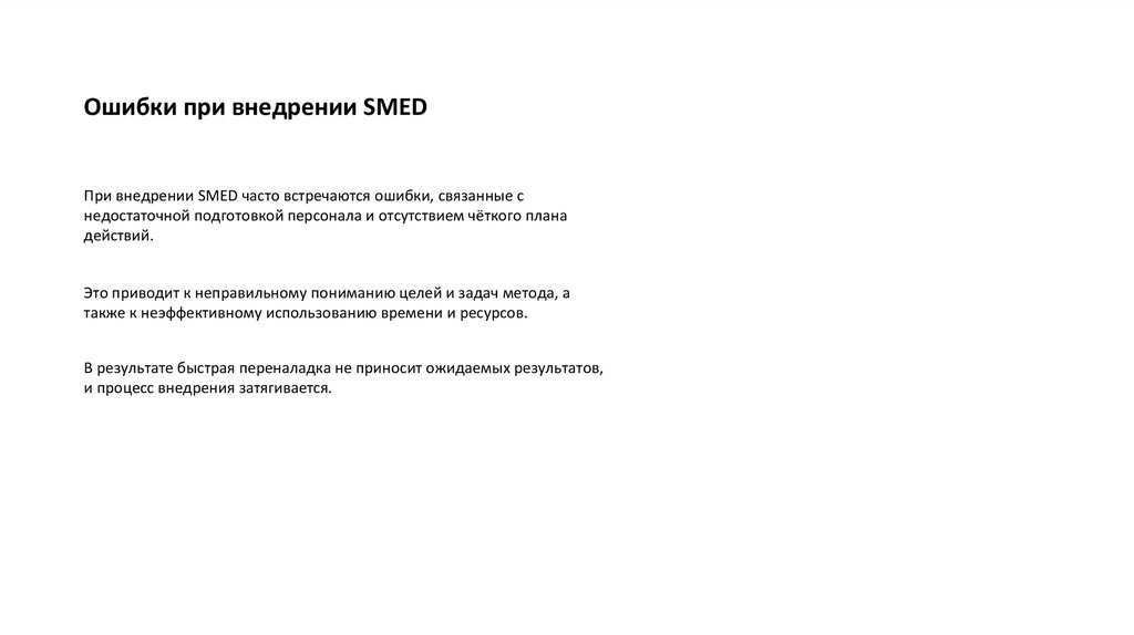 Ошибки при внедрении SMEDПри внедрении SMED часто встречаются ошибки, связанные с