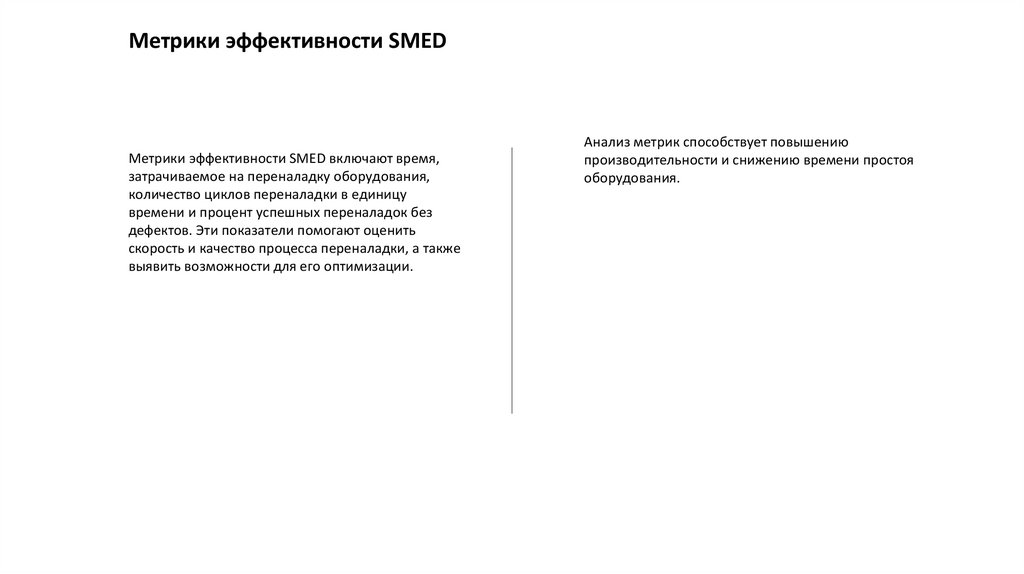 Метрики эффективности SMEDМетрики эффективности SMED включают время,