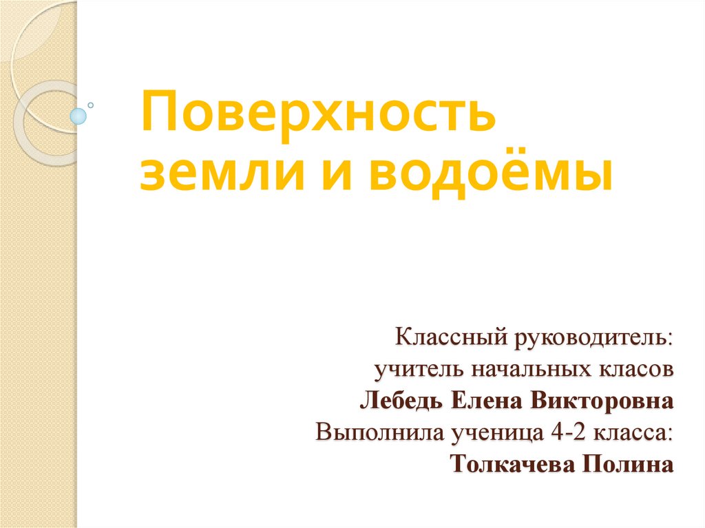 1. Классный руководитель: учитель начальных класов Лебедь Елена Викторовна Выполнила ученица 4-2 класса: Толкачева Полина