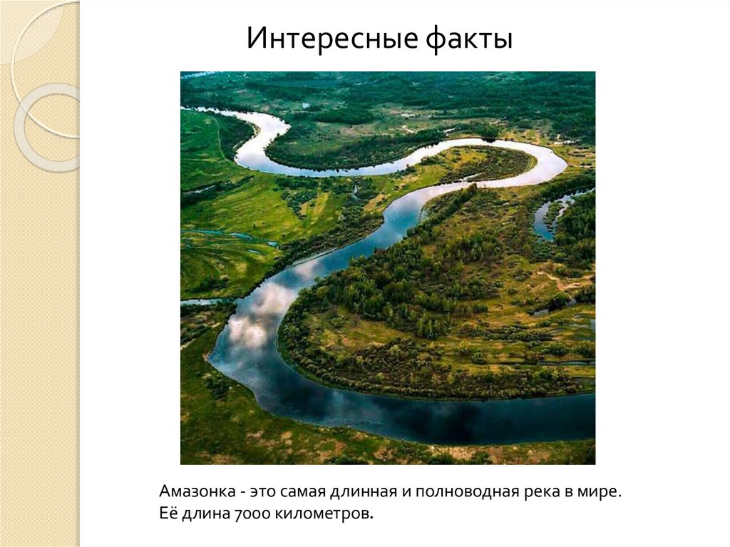 Интересные фактыАмазонка - это самая длинная и полноводная река в мире.