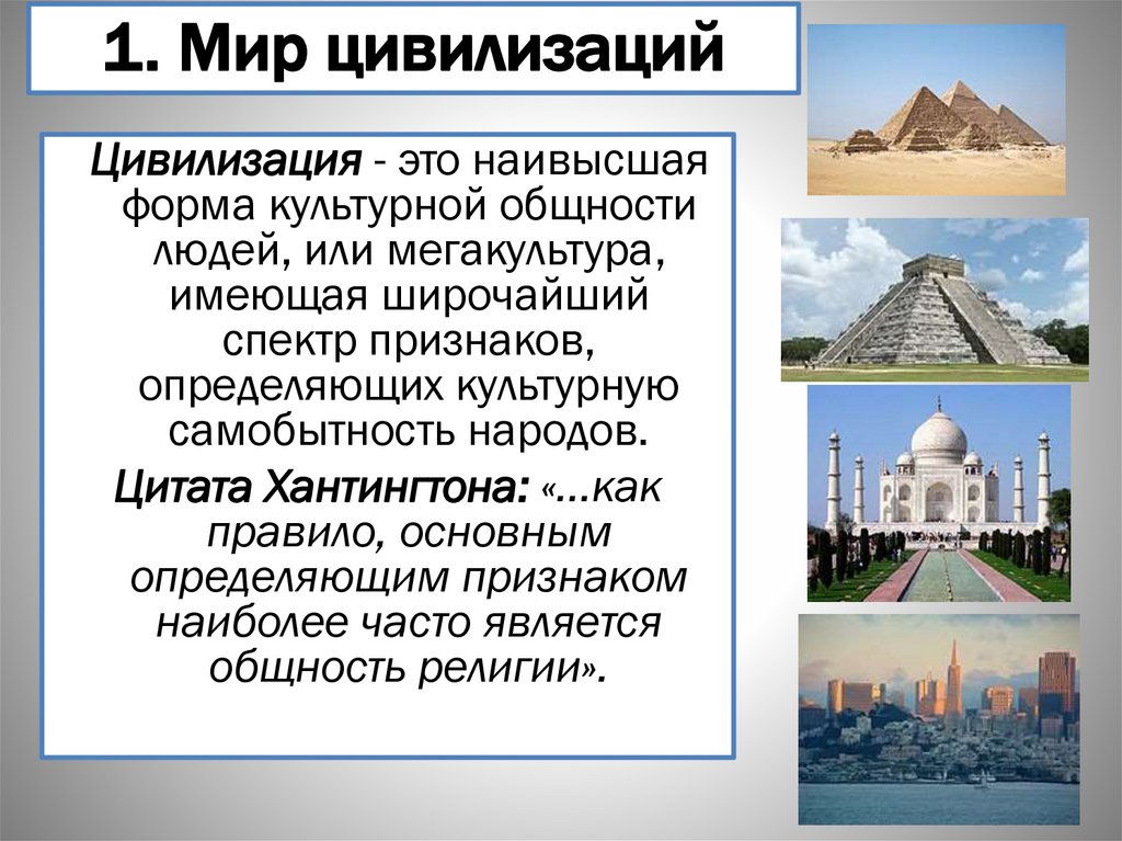 1. Мир цивилизацийЦивилизация - это наивысшая