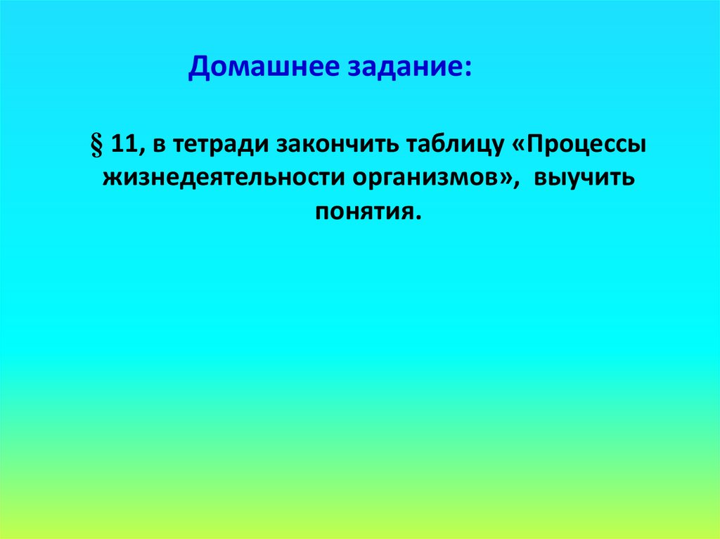 Домашнее задание:§ 11, в тетради закончить таблицу «Процессы