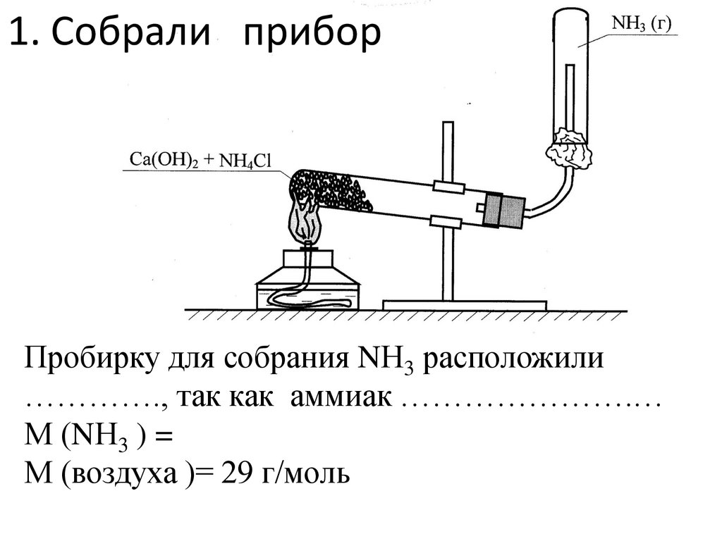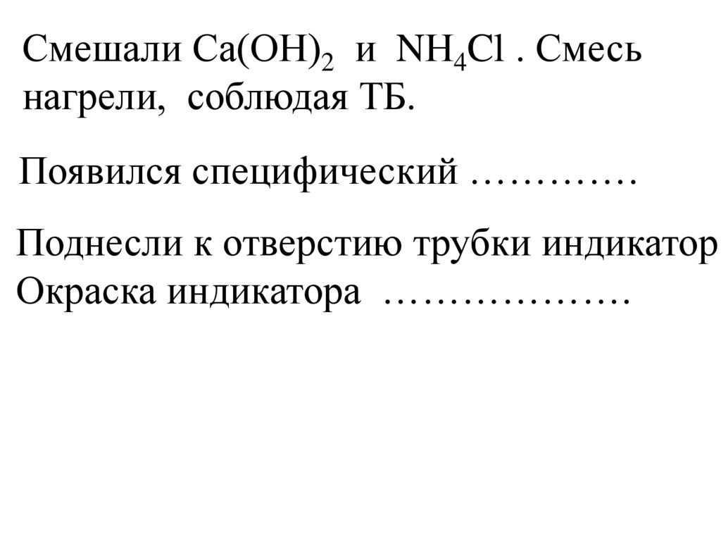 Смешали Са(ОН)2 и NН4Cl . Смесьнагрели, соблюдая ТБ.