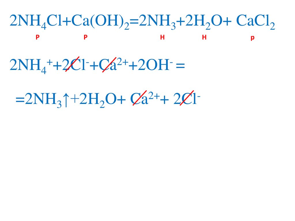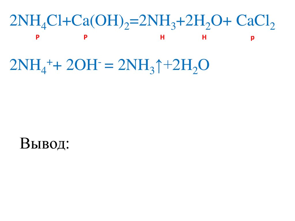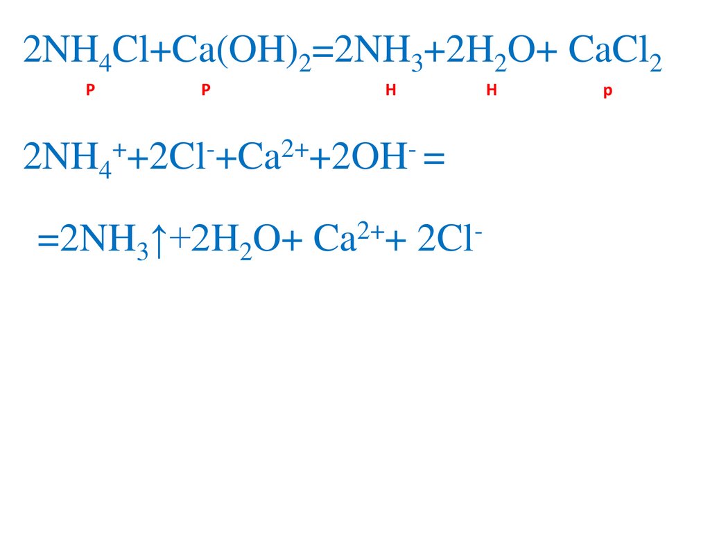 2NH4Cl+Ca(OH)2=2NH3+2H2O+ CaCl2Р