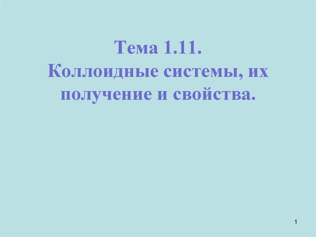 1. Тема 1.11. Коллоидные системы, их получение и свойства.