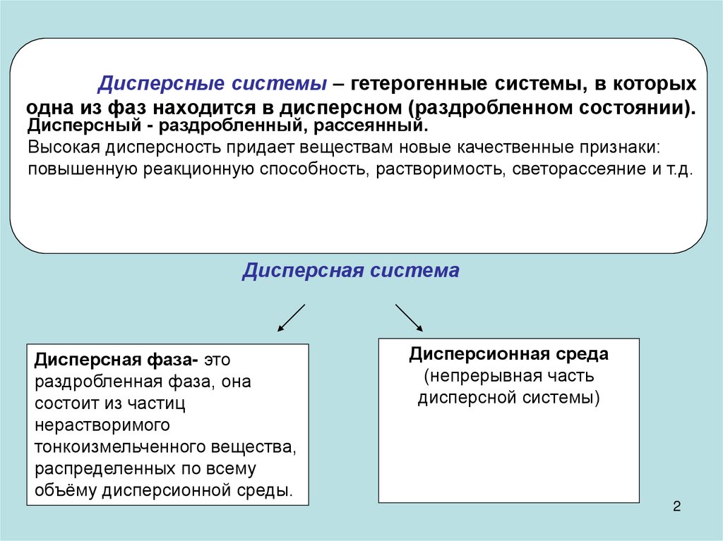 2. Дисперсность (раздробленность).