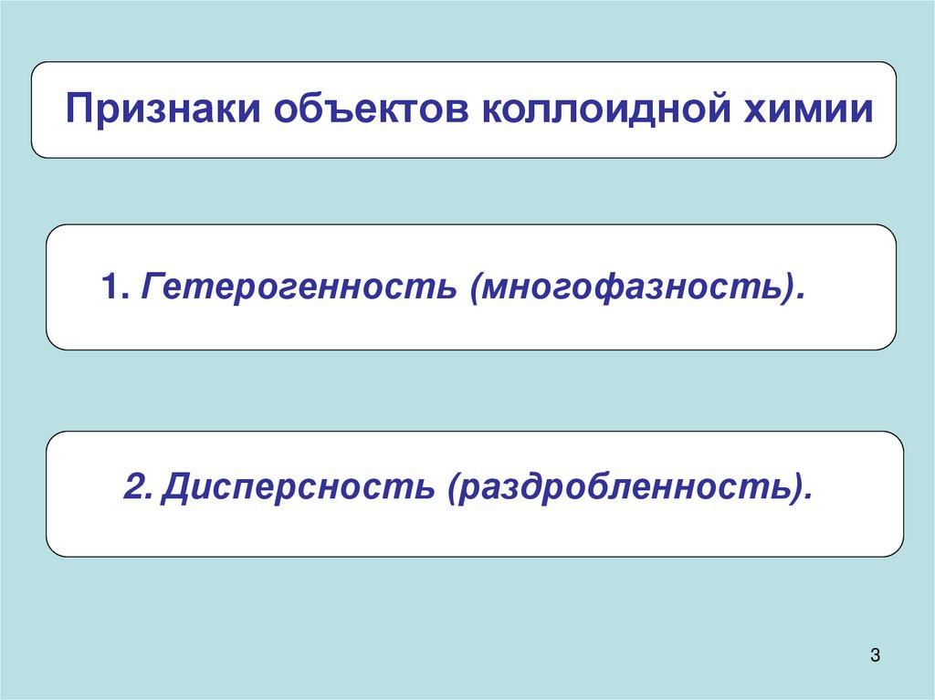 Признаки объектов коллоидной химии1. Гетерогенность (многофазность).