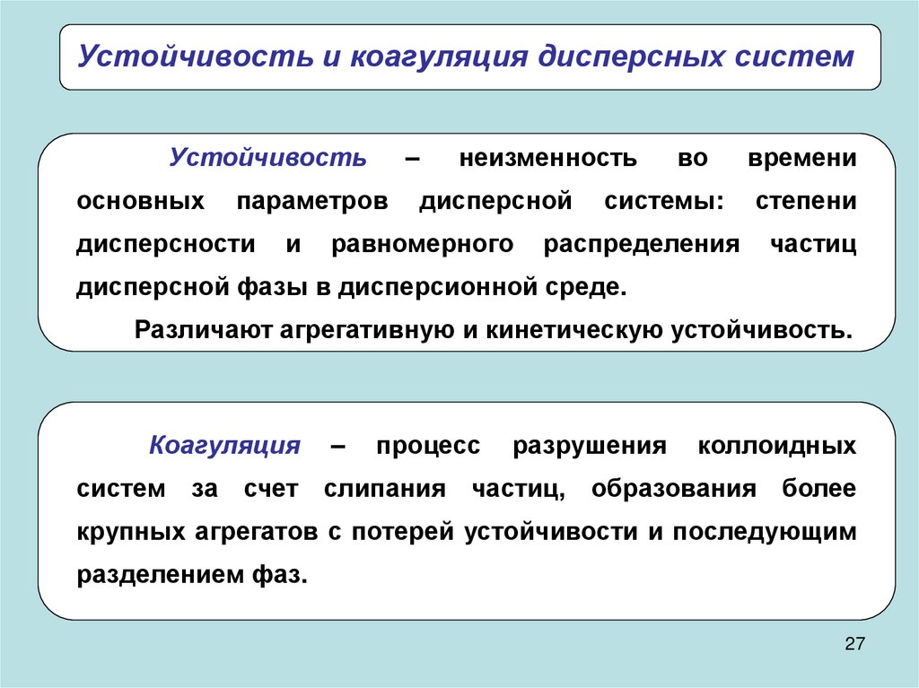 Устойчивость и коагуляция дисперсных системУстойчивость