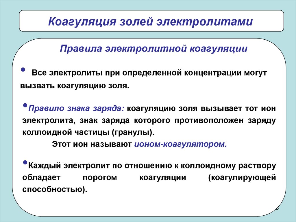 Коагуляция золей электролитамиПравила электролитной коагуляции