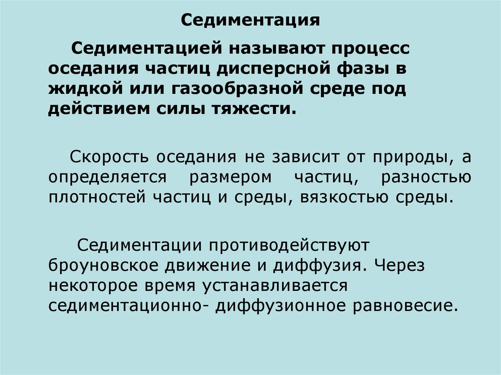 СедиментацияСедиментацией называют процесс