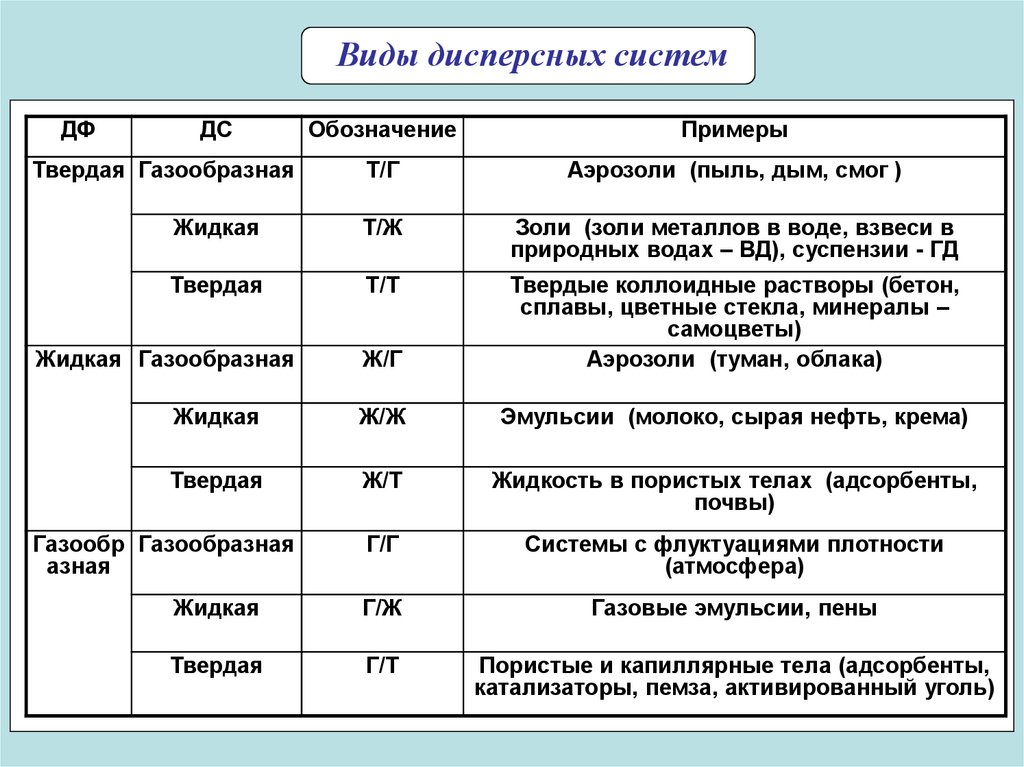 Виды дисперсных системДФ