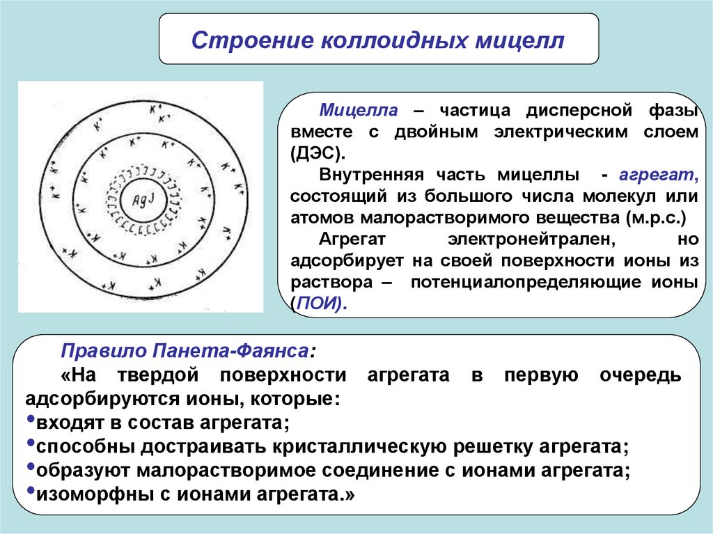 Строение коллоидных мицеллМицелла – частица дисперсной фазы