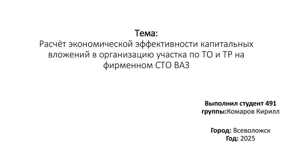 1. Тема: Расчёт экономической эффективности капитальных вложений в организацию участка по ТО и ТР на фирменном СТО ВАЗ